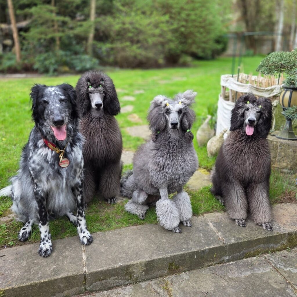 Ale w jej sercu od dawna tliło się marzenie – o własnym pudlu. Taki miał być jej pies idealny – elegancki, mądry, z odrobiną psiego poczucia humoru. Zamiast tego w domu pojawił się Borys – szlachetny mieszaniec borzoja, który zachował w sobie ducha nienażartego dzika z lasu. Aż w końcu, w 2020 roku, marzenie stało się rzeczywistością. W jej życiu pojawiła się Norika – pierwsza, wymarzona suczka pudla dużego szarego. Razem rozpoczęły nowy rozdział – pełen nauki, wyjazdów, wystaw i przygód, które połączyły je jeszcze bardziej. Z czasem stado się powiększyło. Do Noriki dołączyli: Klara – pogodna i zawsze gotowa do zabawy, oraz pełna energii oraz wnoszący do domu codzienną dawkę zamieszania i uśmiechu BluBlu